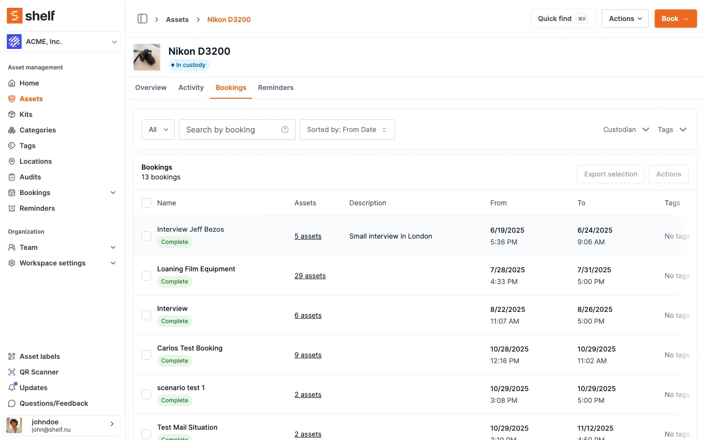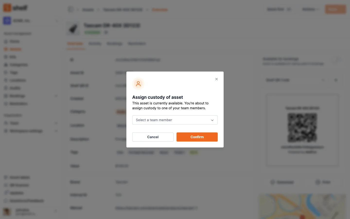 Shelf helps IT teams track laptops, loaner devices, peripherals, and shared equipment with fast QR-first workflows, custody tracking, and conflict-free bookings.