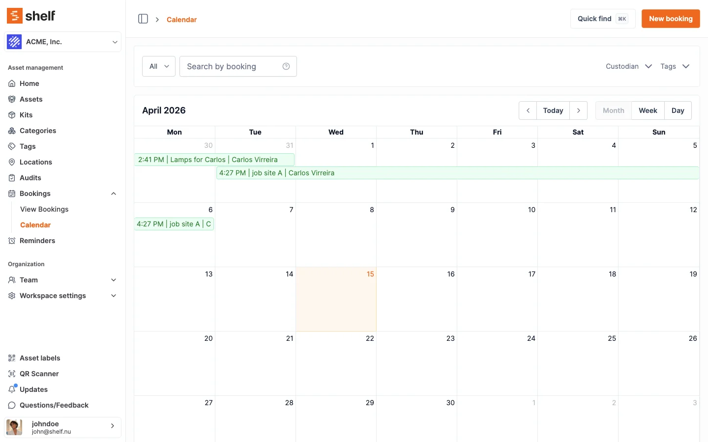 Gear is shared across students, assistants, crews, and different productions. Without clear workflows, things disappear, schedules conflict, and accountability breaks down. Shelf provides simple, reliable workflows that keep equipment organized and available when productions need it.