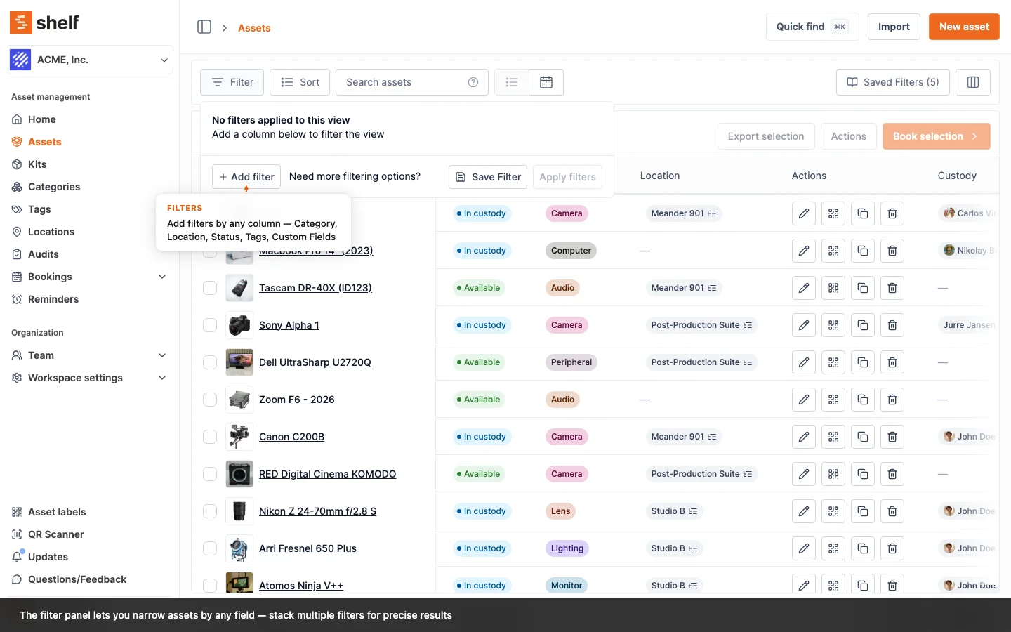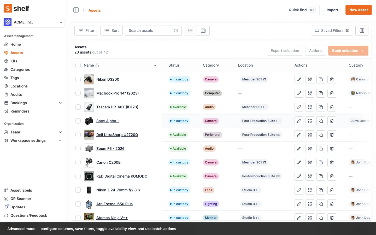 Feedback and requests: the team welcomes suggestions about batch actions, column configuration, and filters. Email hello@shelf.nu or contact your account manager.