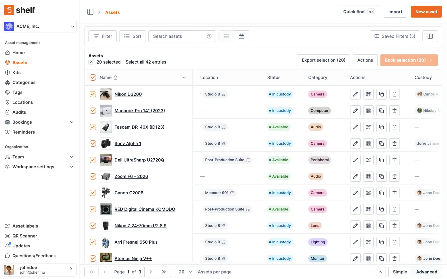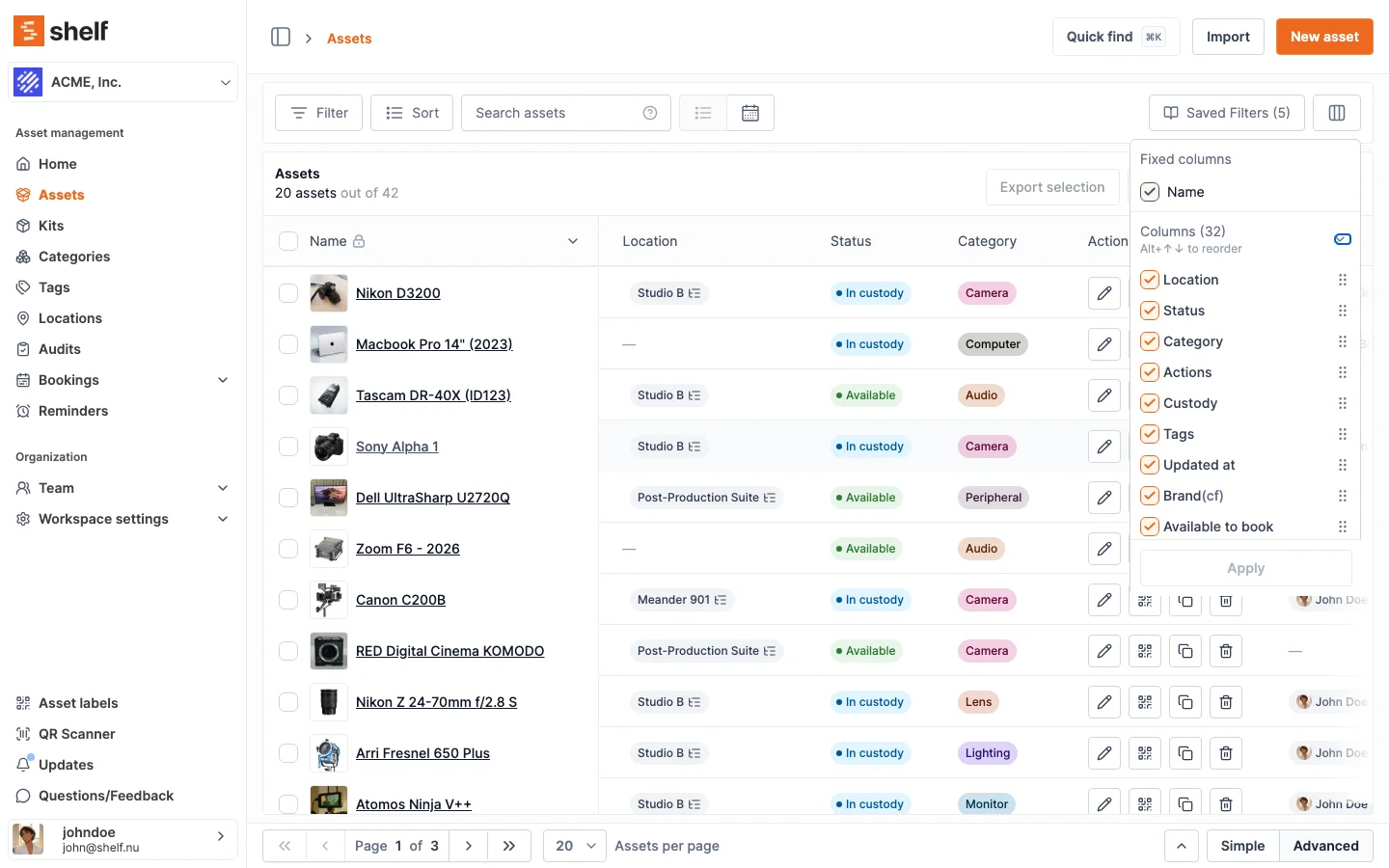 - Go to the Assets index in Shelf
