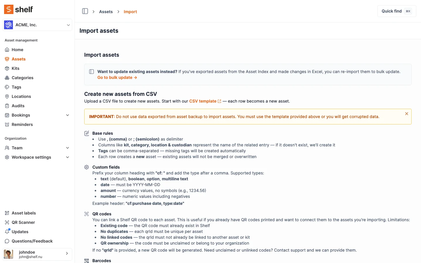 Use Claude (or any AI assistant) to bulk-fill empty tags, values, and custom fields across your Shelf assets — no integration, no code, just a CSV round-trip.