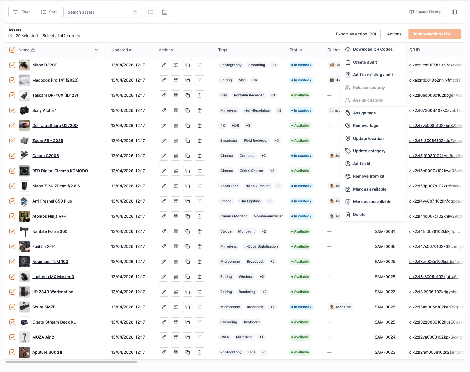 - Click Actions → Download QR Codes