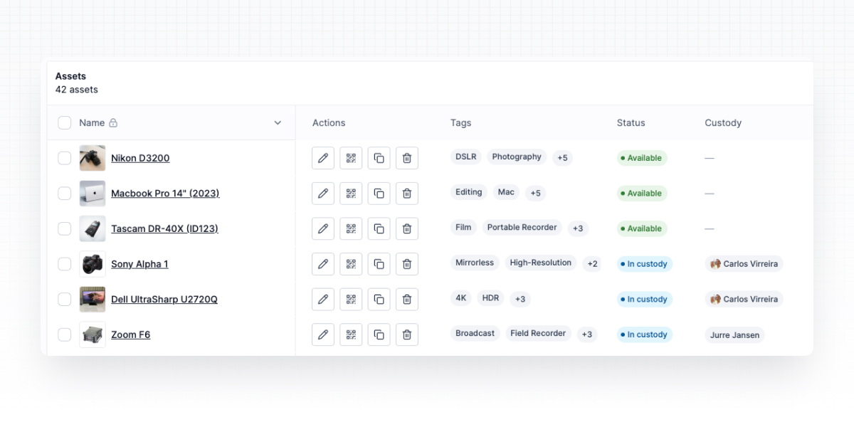 - Organizing and searching: Tags make it easy to group items by custom attributes (e.g., “needs-calibration,” “high-priority”) and quickly retrieve them without relying solely on categories or locations.